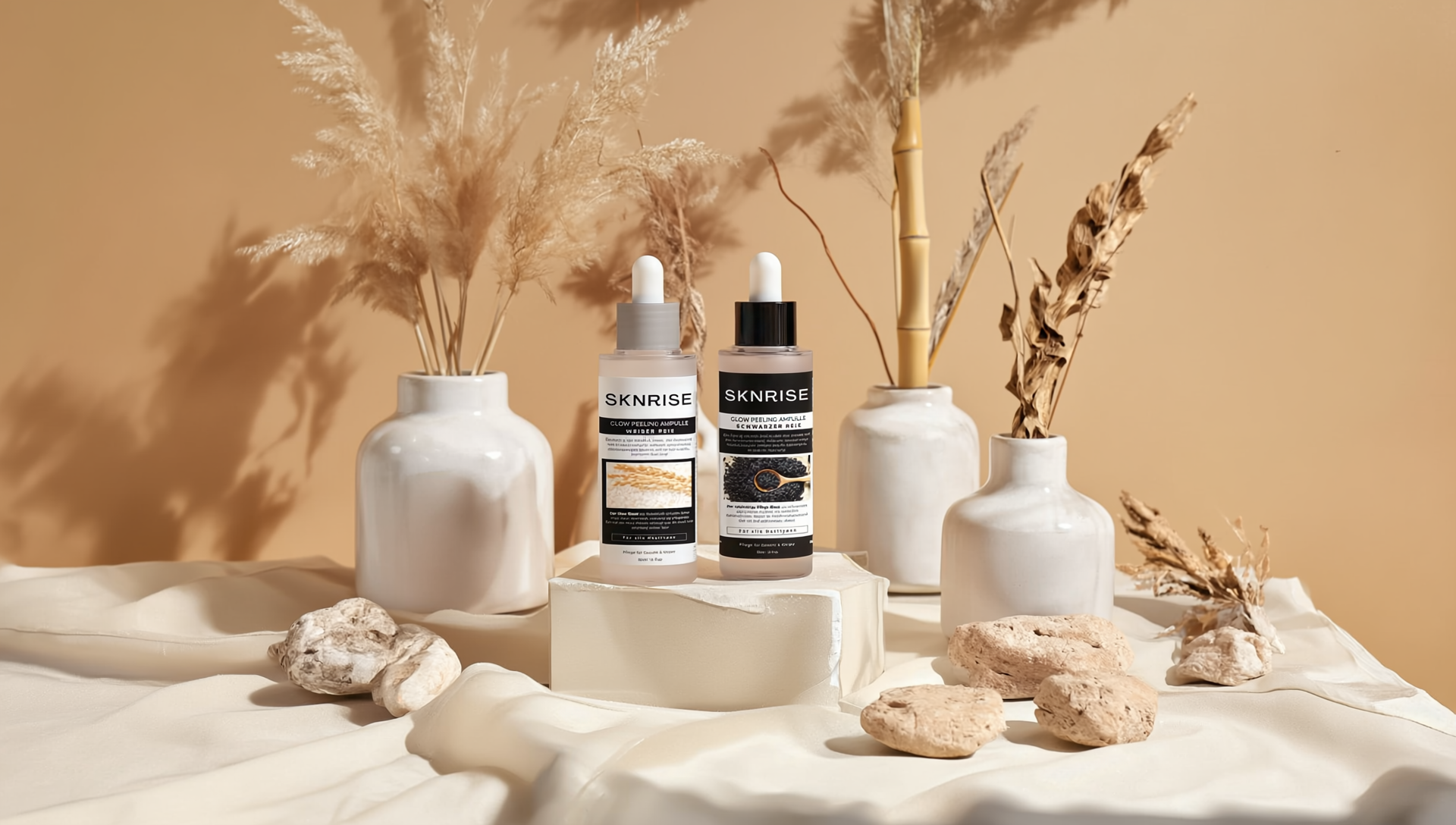 ''Umweltstress lässt die Haut ungleichmäßig erscheinen. Das SKNRISE Reis Peeling mit fermentiertem Reisextrakt glättet den Hautton, spendet Feuchtigkeit und verleiht natürlichen Glow, ohne Irritationen.
