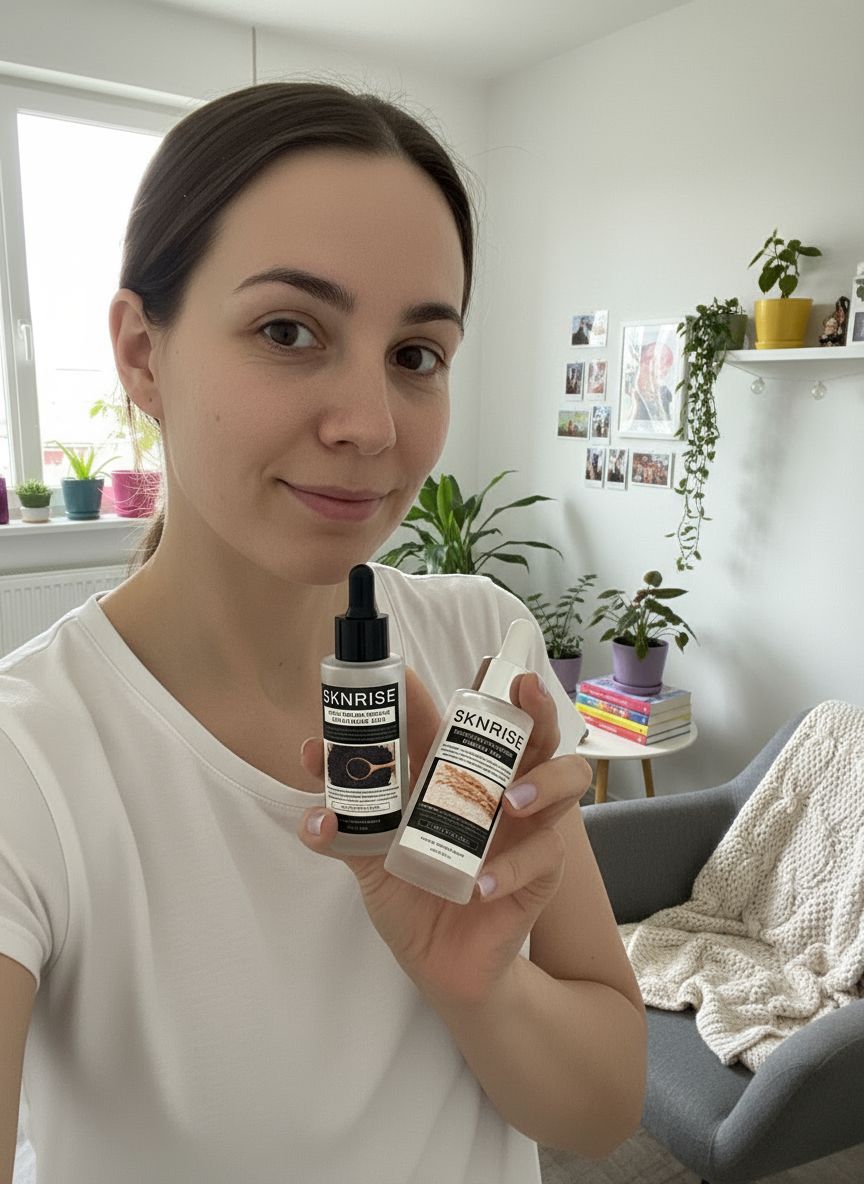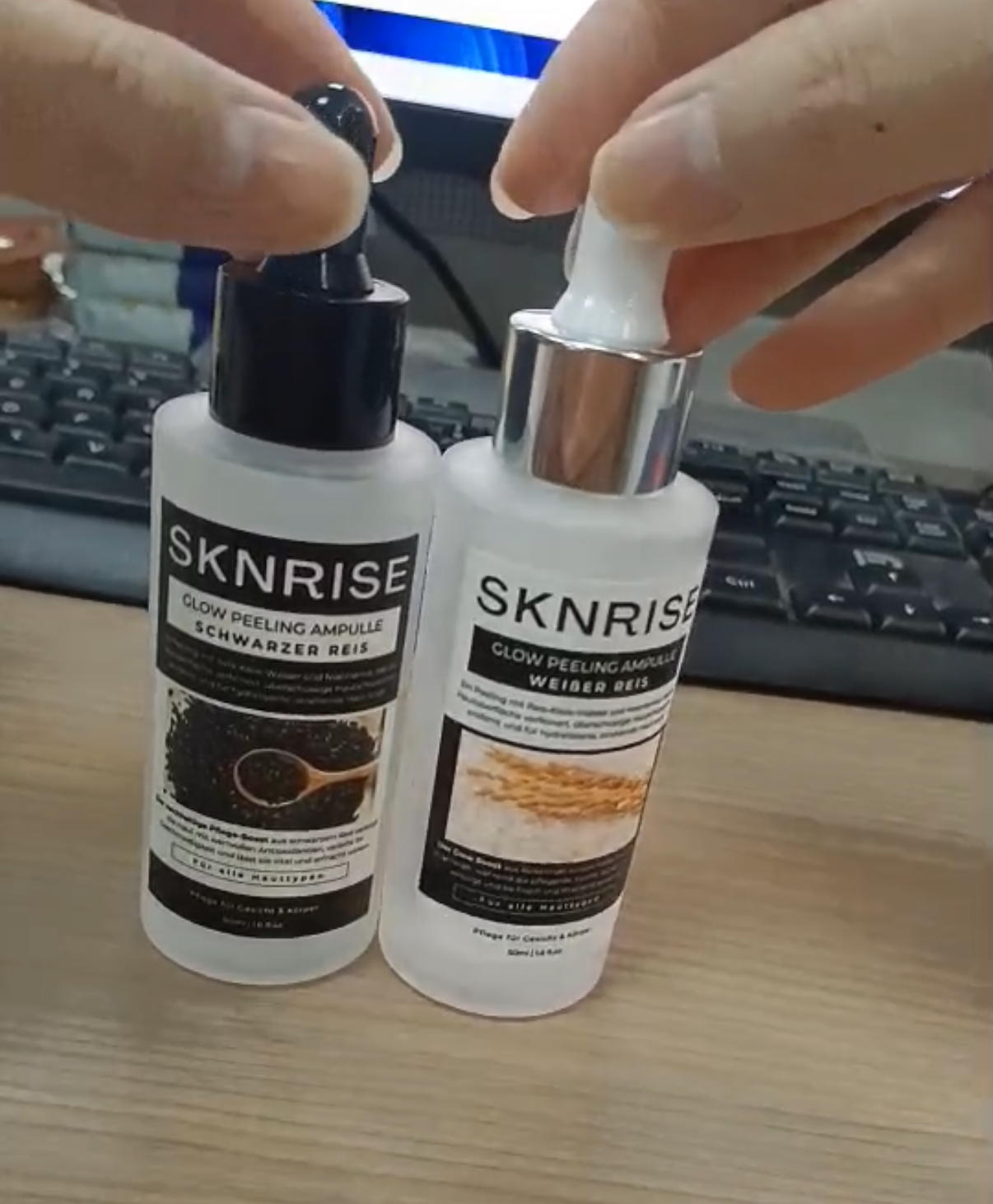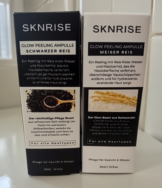 ''Umweltstress lässt die Haut ungleichmäßig erscheinen. Das SKNRISE Reis Peeling mit fermentiertem Reisextrakt glättet den Hautton, spendet Feuchtigkeit und verleiht natürlichen Glow, ohne Irritationen.