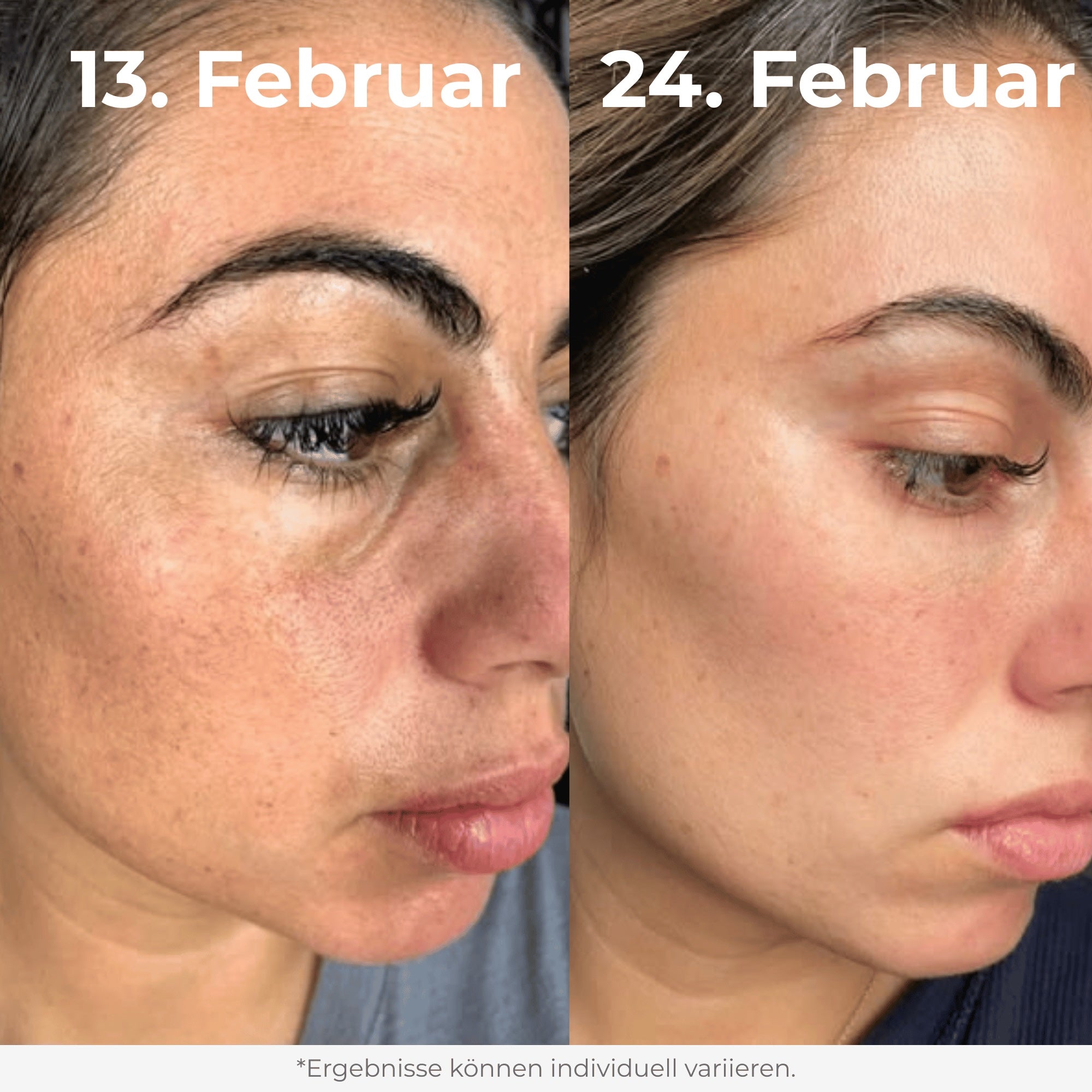 Viele Nutzer:innen bemerken bereits nach wenigen Anwendungen ein strahlenderes und besser durchfeuchtetes Hautbild. Eine glattere Textur und ein ebenmäßiger Hautton zeigen sich in der Regel nach 2–4 Wochen regelmäßiger Anwendung.
